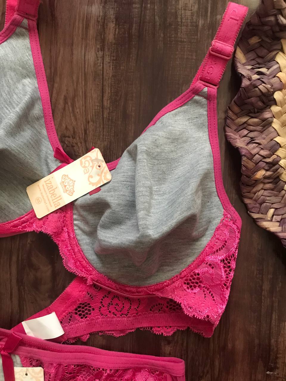 ست شورت و سوتین نخی پرسی فنردار برند ایزابلا سایز ۷۵ تا ۸۵ کار به دلیل نداشتن دوخت کاملا گرد است زیر لباس خوش ایست است شورت فانتزی ولی دارای فاق نخی جهت جلوگیری از عفونت
