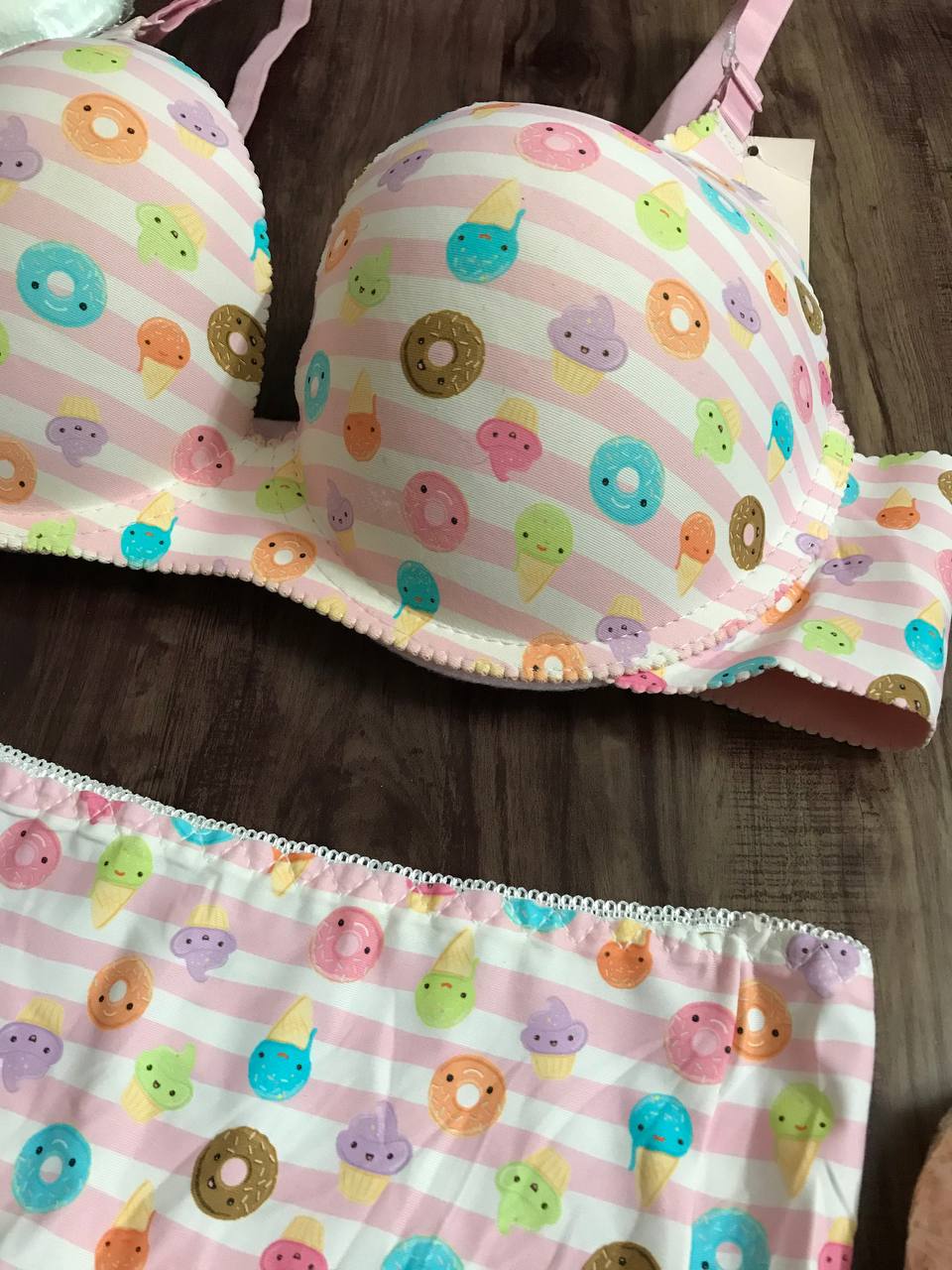 ست شورت و سوتین اسفنجی لیزری فانتزی طرح بستنی و دونات کار خوشگل و شیک با لایه اسفنج خیلی نازک فنردارد اما جک ندارد