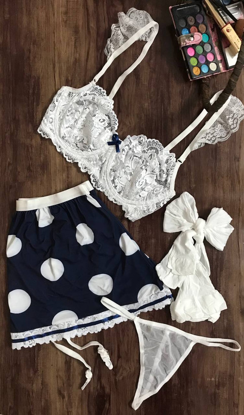 ست سه تیکه شورت و سوتین دامن جوراب فانتزی زنانه دامن به بند جوراب متصل است جوراب دارد شورت لامبادا دارد سوتین فنر دار مناسب سایز سینه ۷۵ تا ۸۵ و سایز بندی ۳۸ تا ۴۴